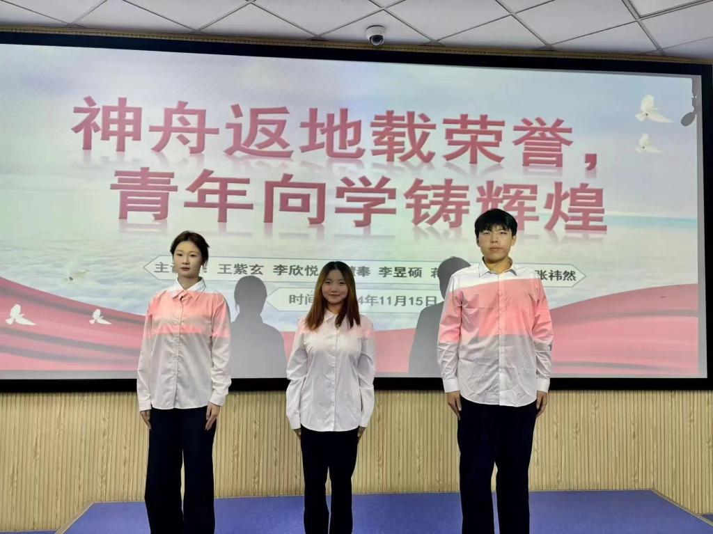 为了增强同学们的民族自豪感,引导大家在新时代传承航天精神,汲取奋斗力量。2024年11月14日—15日,999策略白菜手机论坛于鲲鹏教学楼第三阶梯教室组织开展“神州返地载荣誉,青年向学铸辉煌”主题团课。本次团课由2024级各班团支书主持,2024级全体学生参加。