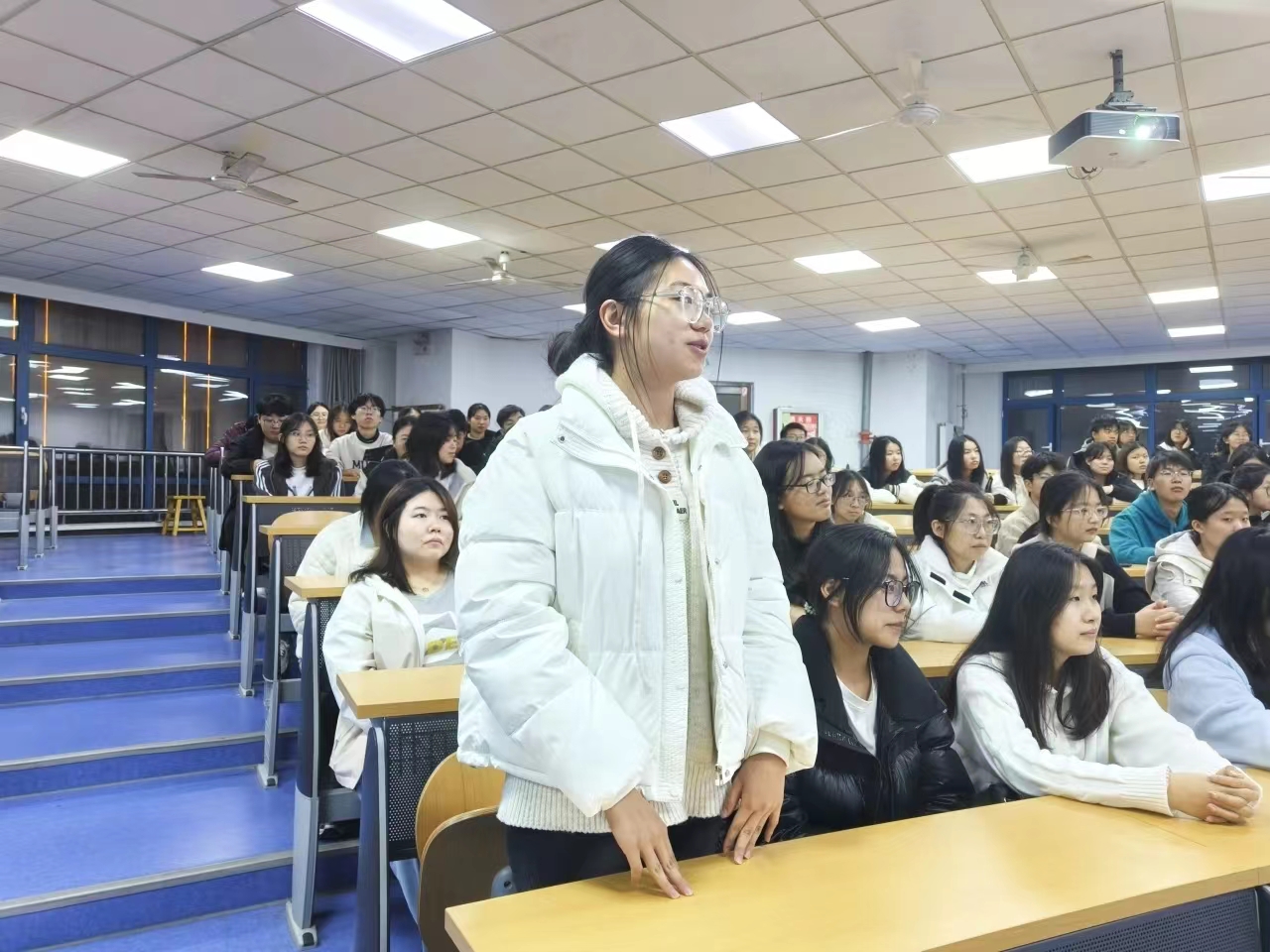 团课过程中,主持人与同学们积极互动,向同学们抛出了“青年向学的意义有哪些”这一问题,同学们认真思考,积极回应,并围绕新时代青年学习的意义和价值展开了积极讨论。最后,同学们纷纷表示要学习航天精神,以航天人为榜样,勤向学,永探索,展芳华。