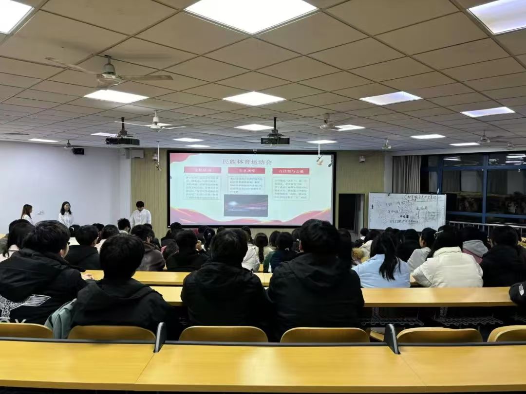 为了增强同学们的民族自豪感,引导同学们在新时代传承和弘扬民族体育文化,培养同学们的团结协作精神。2024年11月28日-29日,999策略白菜手机论坛于鲲鹏教学楼第三阶梯教室组织开展“民族体育彰风采,团结征途筑芳华”主题团课。本次团课由2024级各班团支书主持,2024级全体学生参加。