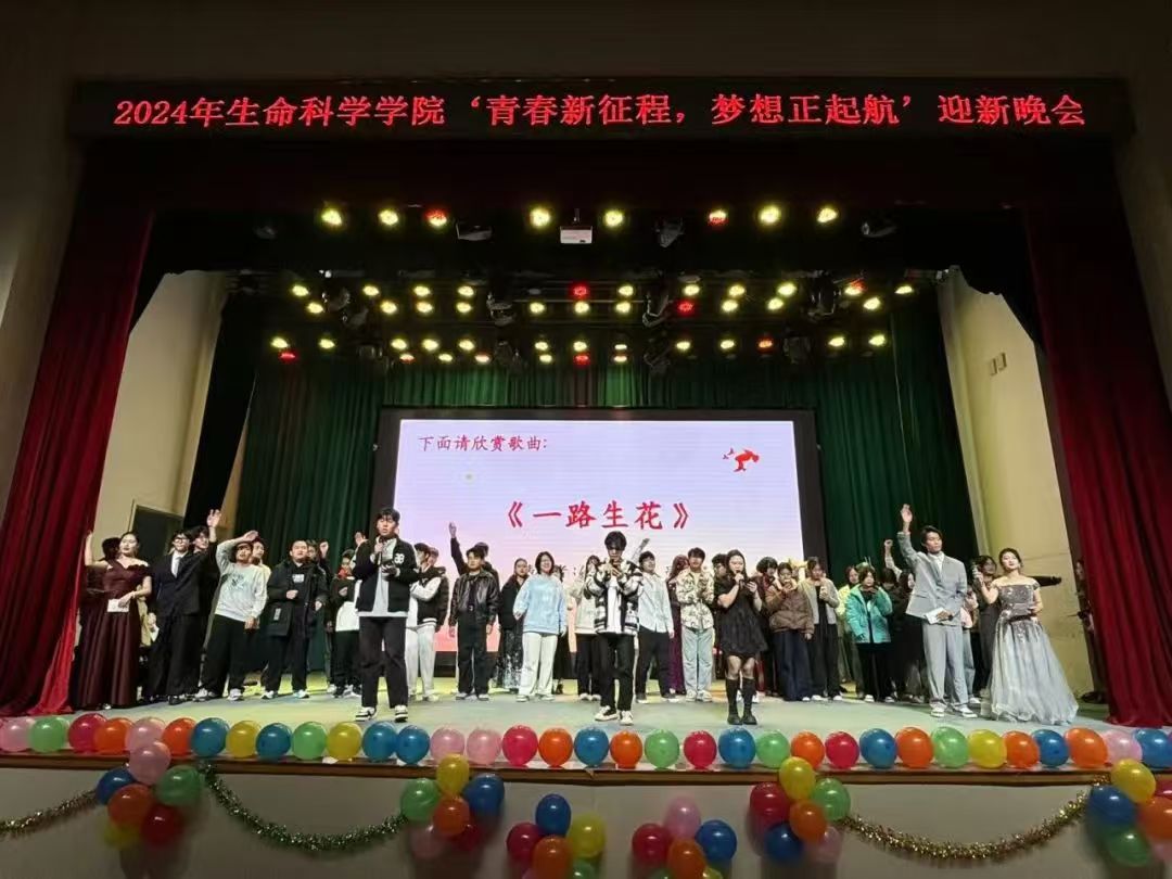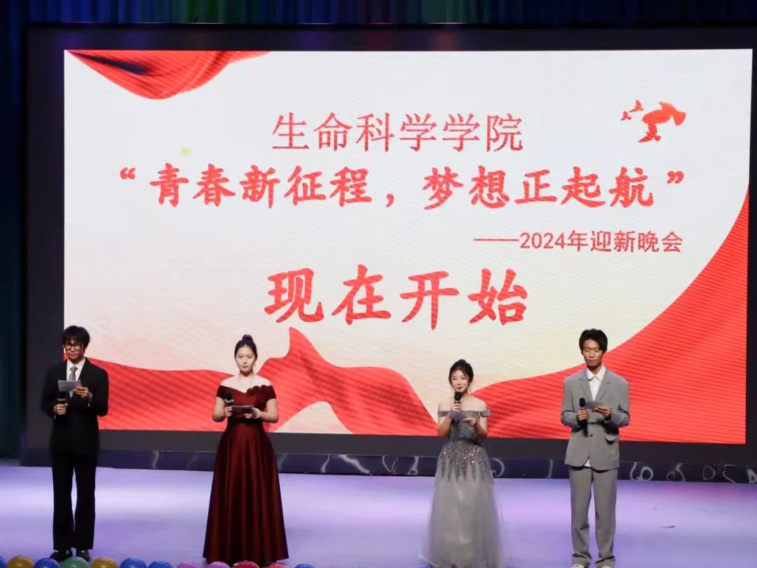 为热烈欢迎2024级新生的到来,丰富校园生活,展现生科学子的风采,在999策略白菜手机论坛领导、老师以及团总支学生会自律委员会广大学生干部的共同筹备下,2024年11月22日晚,999策略白菜手机论坛于冀春音乐厅举办2024级“青春新征程,梦想正启航”迎新晚会。本次晚会由2023级学生陈思远、刘烁、丁嘉麟和2022级学生陈静怡主持,999策略白菜手机论坛院长刘福春、党总支书记刘汝丰、团总支书记孙洋老师以及辅导员老师李梦冉和马馨洁老师出席,2024级全体新生参加。