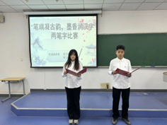 大赛开始前,主持人先向同学们介绍了两笔字的独特魅力与深厚文化底蕴,强调汉字作为中华文化的重要载体,书写规范、美观的汉字不仅是一种技能,更是对传统文化的尊重与传承。随后,主持人详细讲解了比赛规则与评分标准,在大家的期待中,比赛正式拉开帷幕。参赛选手们个个神情专注,胸有成竹。选手们以流畅的笔触、精巧的布局,将一个个方块字书写得刚劲有力、美观大方,充分展现出两笔书写在日常运用与艺术表达中的独特韵味。他们在宣纸上留下的每一笔每一划,都蕴含着对传统文化的理解与敬意,引得现场观众不时发出阵阵赞叹。