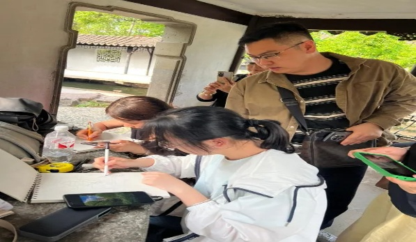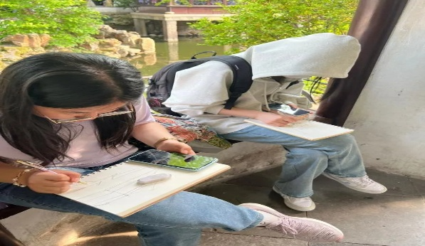 在苏州留园、拙政园、网师园、狮子林等处,学生们进行了园林建筑测绘,园林效果图速写,深刻感受“不出城廓而获山水之怡,身居闹市而得林泉之趣”的古典意境。