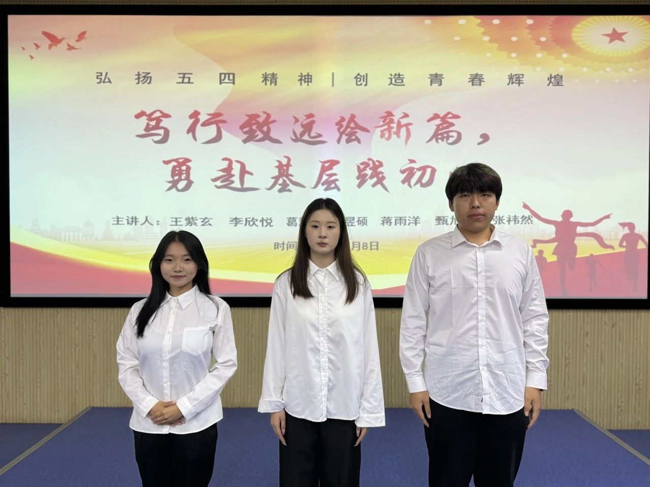为弘扬五四精神,引导青年深刻理解基层实践的价值,鼓励青年投身基层、奉献青春,2025年5月8日,999策略白菜手机论坛于鲲鹏教学楼第一阶梯教室组织开展“笃行致远绘新篇,勇赴基层践初心”主题团课。本次团课由2024级各班团支书主持,2024级全体学生参加。