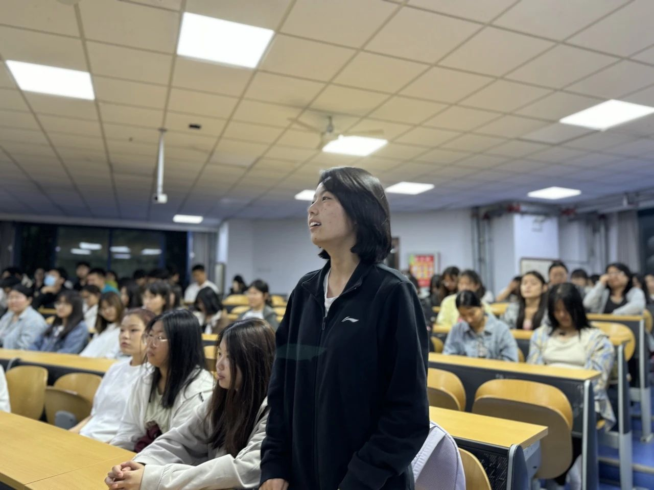 团课过程中,主持人与同学们积极互动,向同学们抛出了“基层实践对青年成长有何意义?”这一富有启发性的问题,同学们积极思考,踊跃发言,从多个角度分享见解。最后,主持人鼓励同学们思考基层实践对自身成长的意义,激励同学们牢记青年使命,紧跟时代步伐,以五四精神为指引,在基层实践中拼搏奋进。