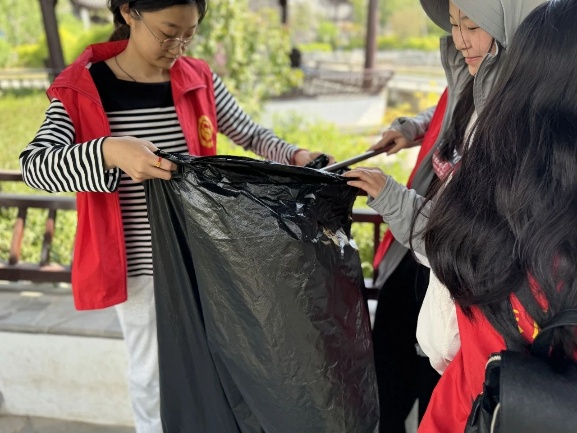 活动中,志愿者们迅速投入到环境整治工作中,有条不紊地进行清扫工作。他们身着统一志愿服装,佩戴防护手套,手持专业工具,对南川楼周边街道和公共区域展开细致清理。面对卫生死角的杂物堆积、隐蔽角落的顽固垃圾,志愿者们秉持严谨态度,不怕脏、不畏累,以专业高效的协作模式,对每一处区域进行彻底清扫。在清理过程中,大家充分发扬奉献精神,用实际行动表达对历史文化遗产的尊重与守护,生动展现了新时代青年的责任担当与精神风貌。