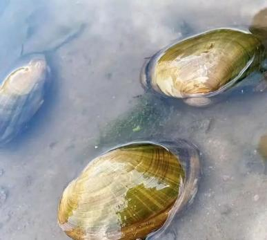 池塘小河底的泥沙里,河蚌“蚌蚌”正静静地躺着,像一块半开的灰色石头。它的壳厚厚的,上面有一圈圈波浪形的花纹,像刻着秘密的密码。